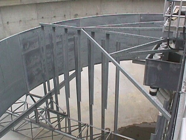 Some designs incorporate coagulation, flocculation, and sedimentation a single unit (either up flow solids contact units or sludge blanket units). Most up flow solids contact units use recirculation of previously formed floes to enhance floc formation and maximize usage of treatment chemicals. Sludge blanket units force newly forming flocs to pass upward through a suspended bed of floc. In both styles of units, the cross-sectional surface of the basin increases from bottom to top, causing water flow to slow as it rises, and allowing floc to settle out. Combination units generally use higher rise rates and shorter detention time than conventional treatment. Numerous manufacturers market proprietary units based on these design concepts. These units are more compact and require less land for plant site location. On-site pilot plant evaluation, by a qualified engineer familiar with the water quality, is recommended prior to design.